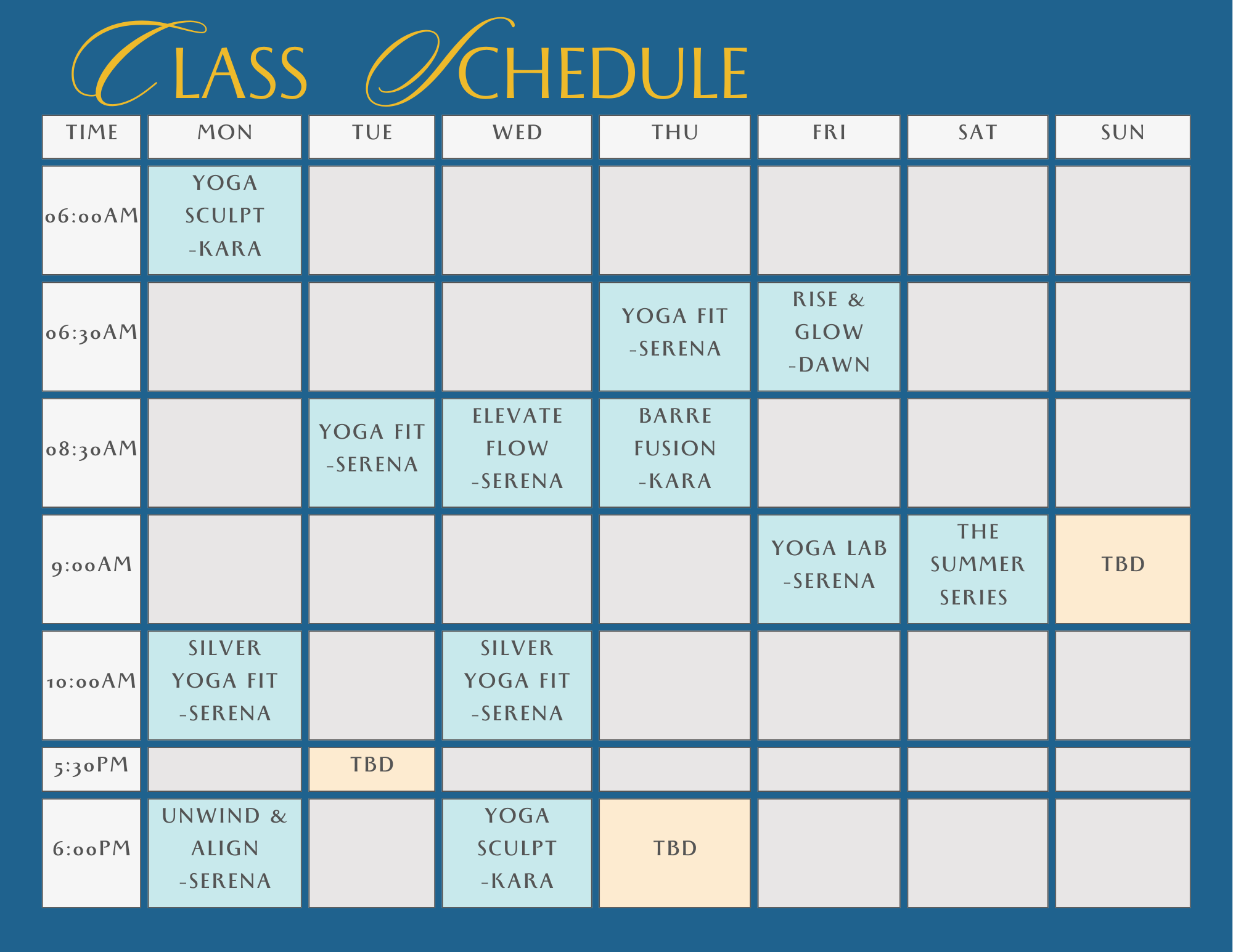 It’s important to us to bring something fresh, challenging, fun and expansive to our community! Check out our classes and find the perfect match for you wellness goals.