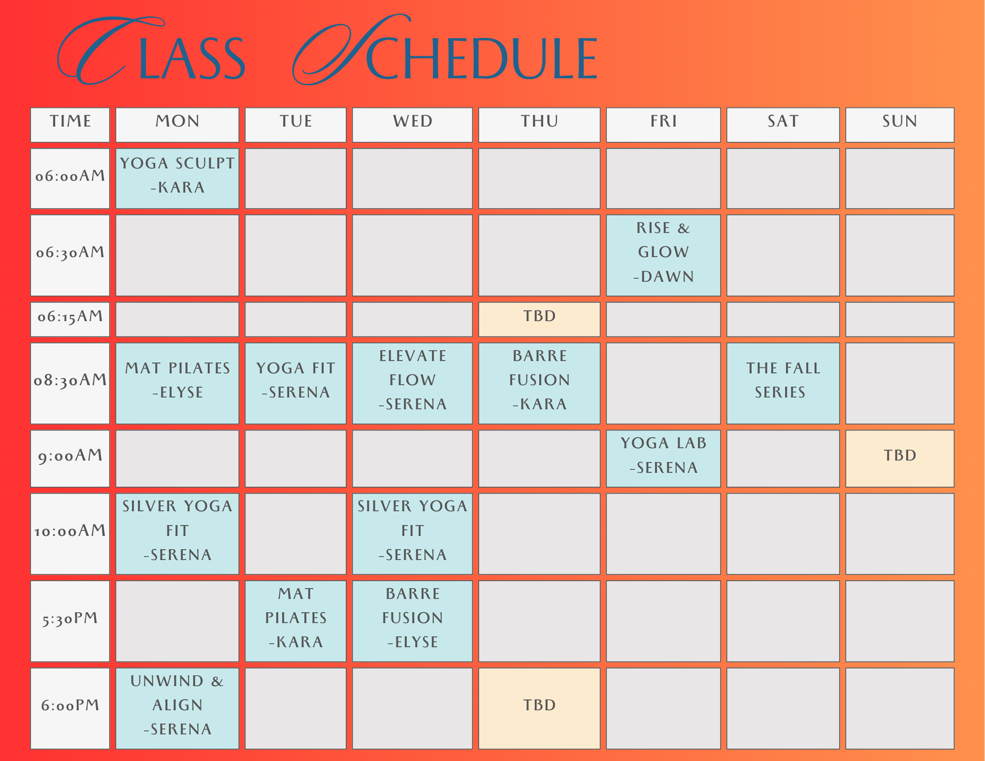 It’s important to us to bring something fresh, challenging, fun and expansive to our community! Check out our classes and find the perfect match for you wellness goals.